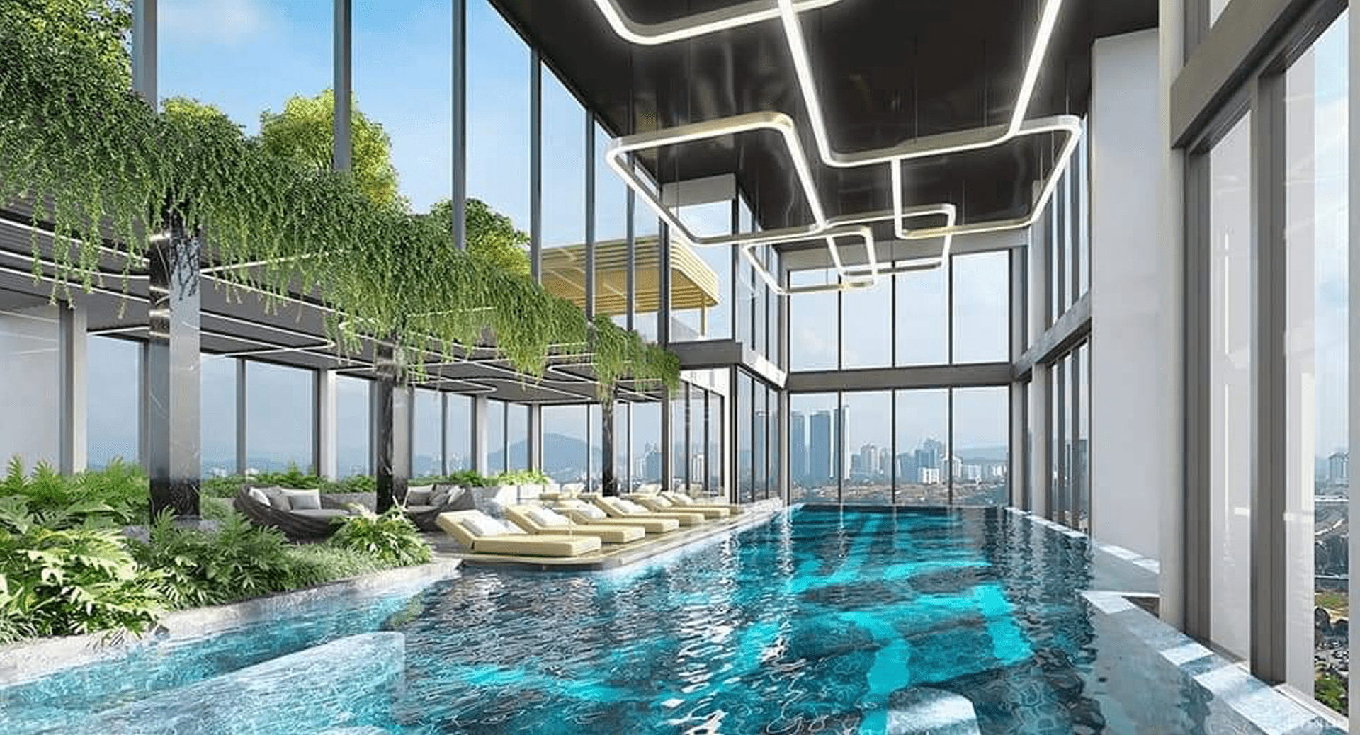 Nổi bật nhất là mỗi tòa có một bể bơi trên tầng áp mái, một vườn thượng uyển trên sân thượng